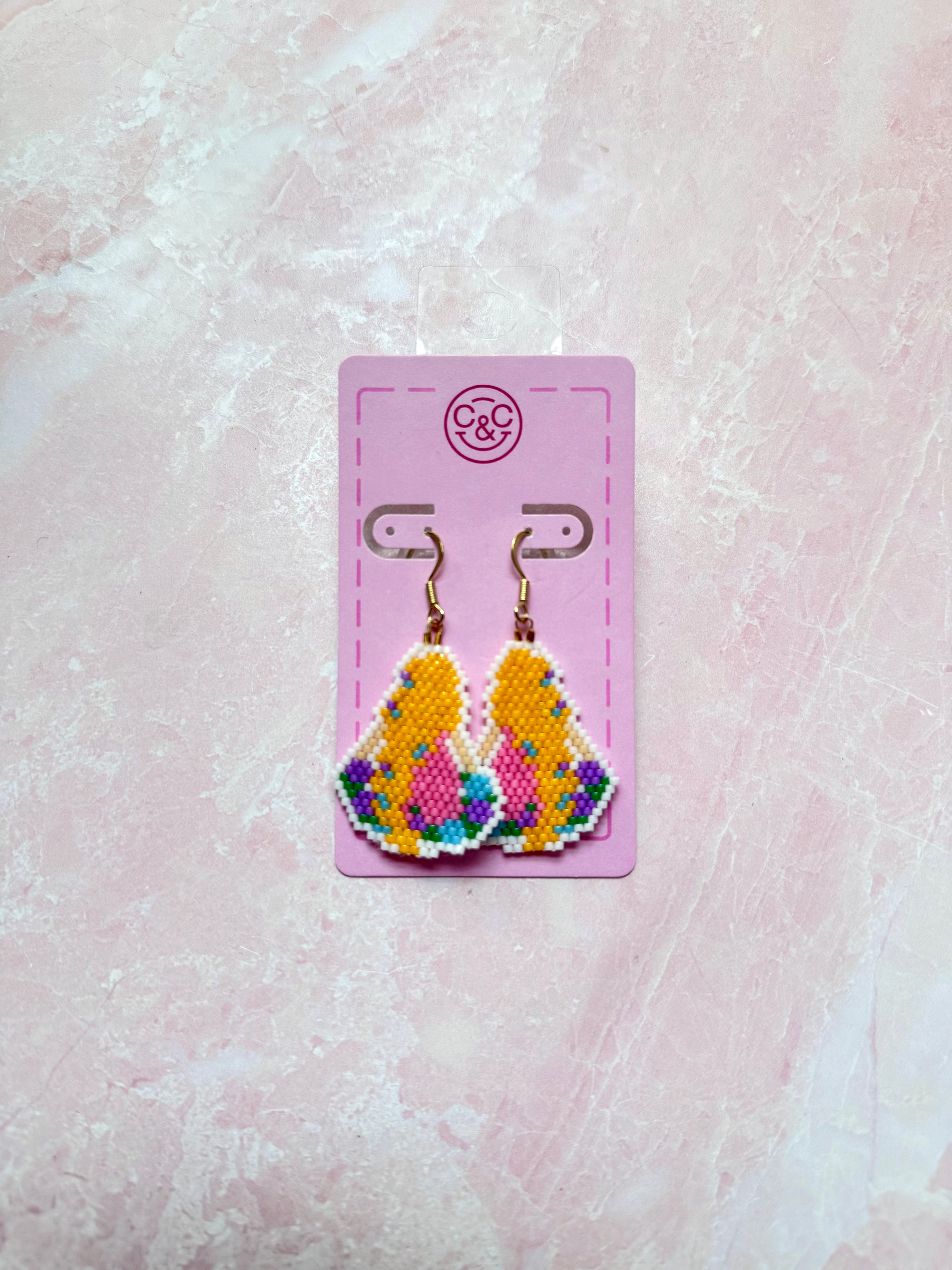 These earrings are completely hand woven with specialty Japanese glass beads. They’re a one of a kind statement piece that can never be completely replicated!