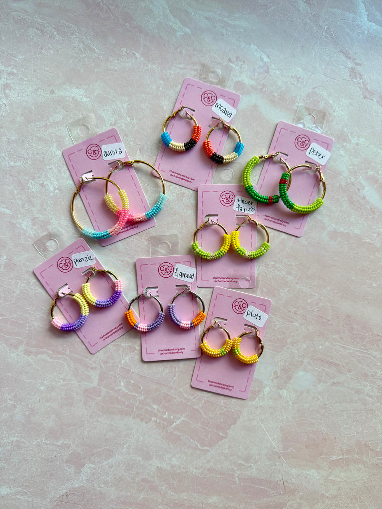 Character hand beaded hoop earrings