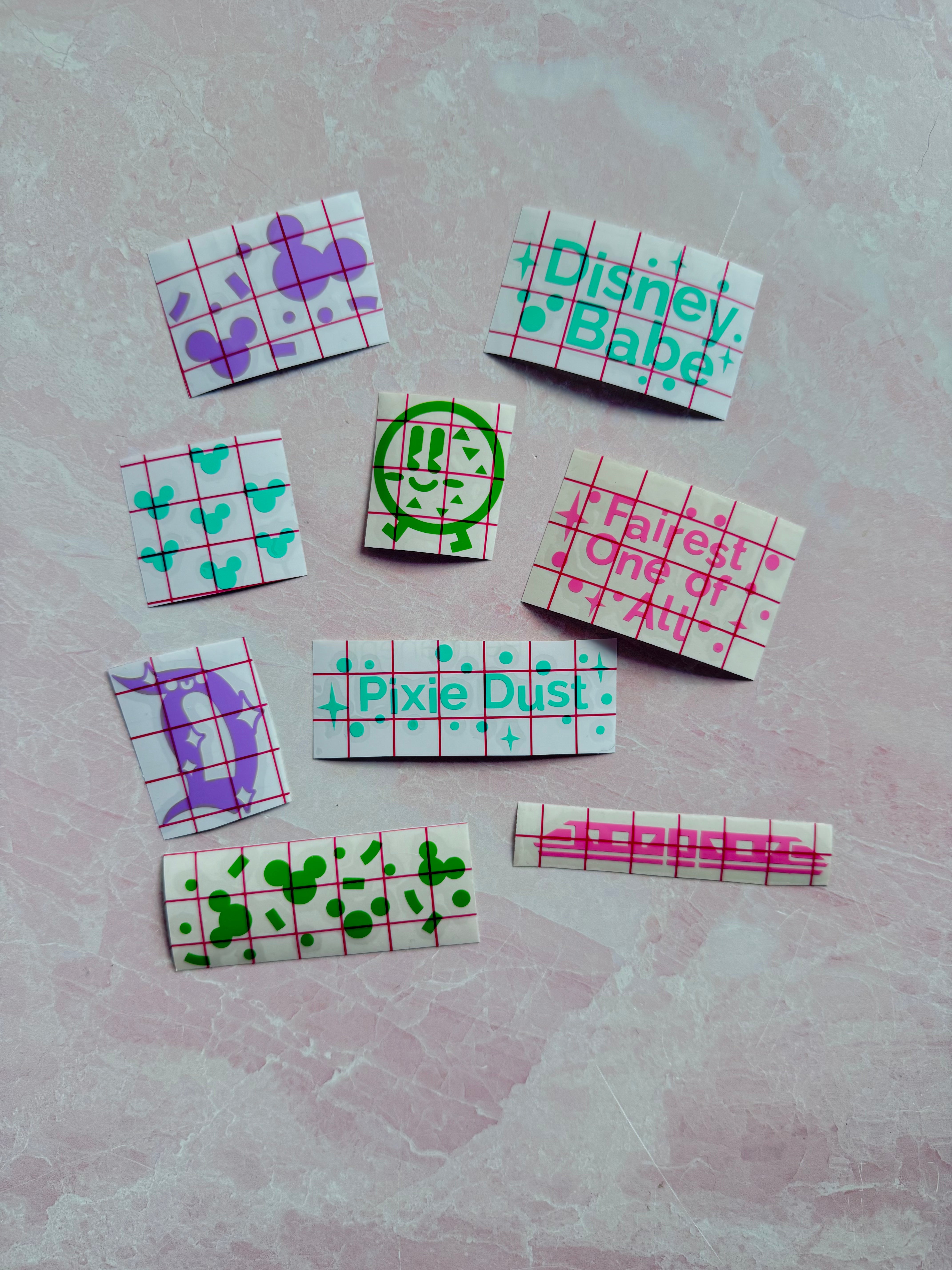 Each one is made from permanent waterproof vinyl and can be put onto anything you can think of. They’d go perfectly on a mirror or water bottle as a perfect little reminder of the magic!
